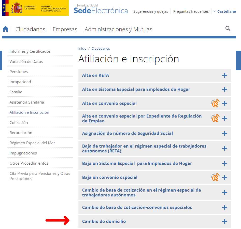 ¿Puedo realizar el cambio de domicilio para perceptor de prestaciones de la Seguridad Social de forma online?