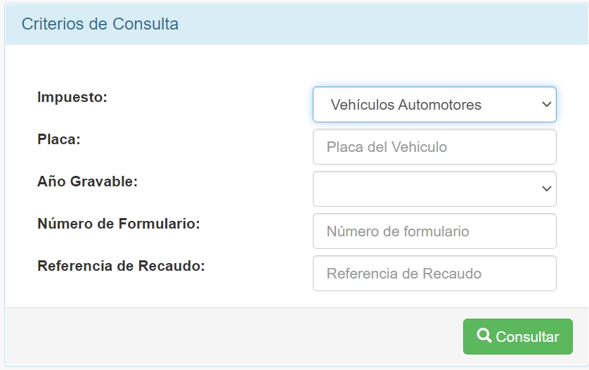 6. Una vez ingresada la información, haz clic en "Consultar" o "Descargar impuesto vehicular".