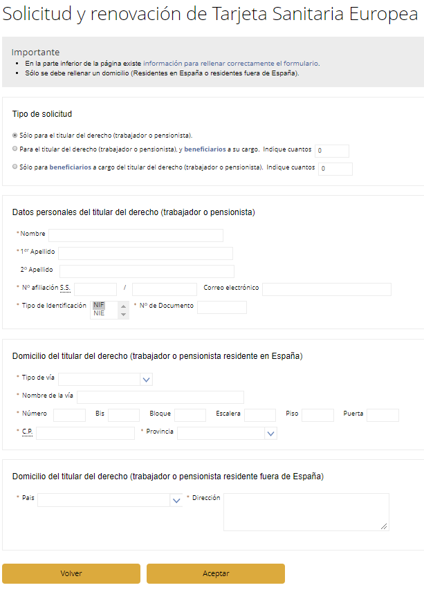 2. Entra en el apartado de "Solicitud de la Tarjeta Sanitaria Europea" y rellena el formulario con tus datos personales y de contacto.
